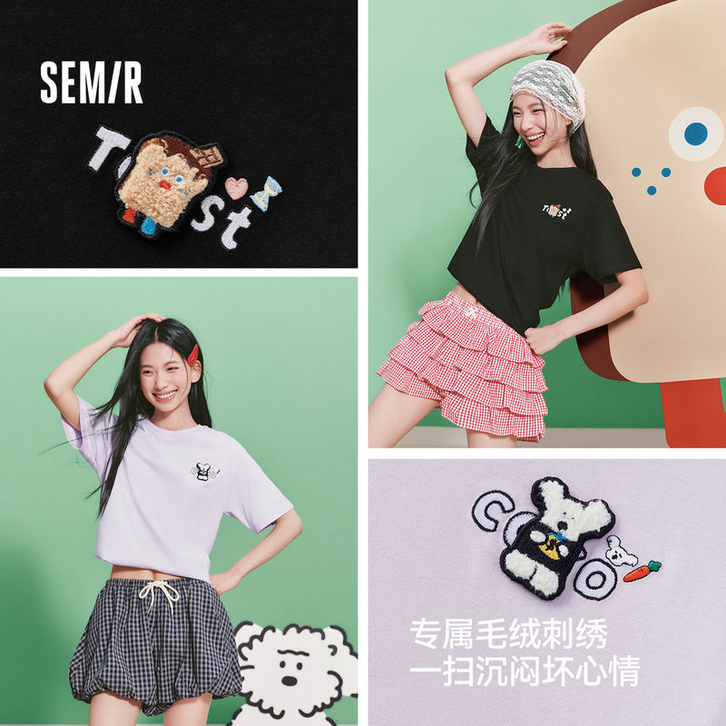 森马BRUNCH BROTHER联名短袖T恤女夏季纯棉刺绣图案2026新款上衣
