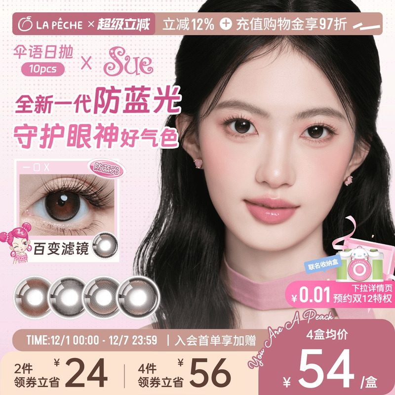 拉拜诗美瞳伞语阿sue联名日抛10片自然棕通勤直径防蓝光隐形眼镜