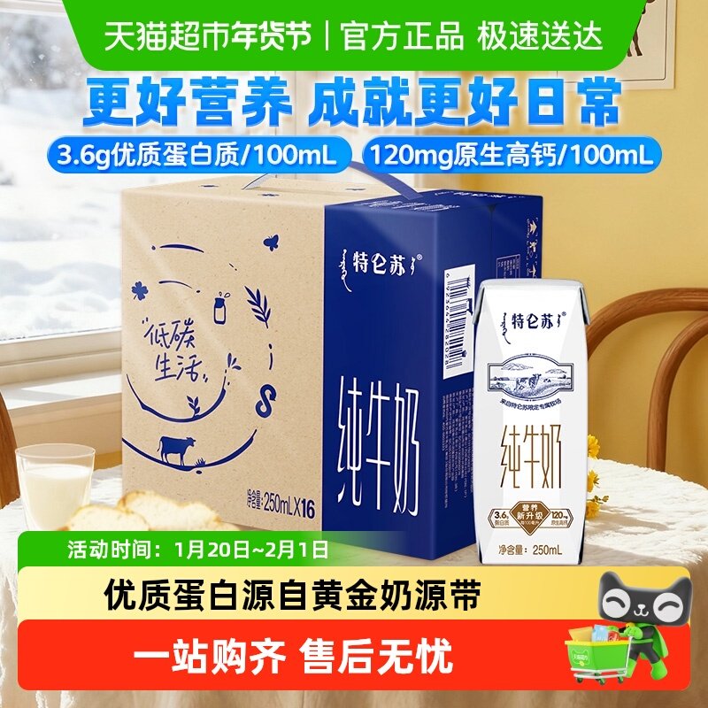 【百亿补贴】蒙牛特仑苏纯牛奶250ml*16盒优质营养牛奶 超市推荐