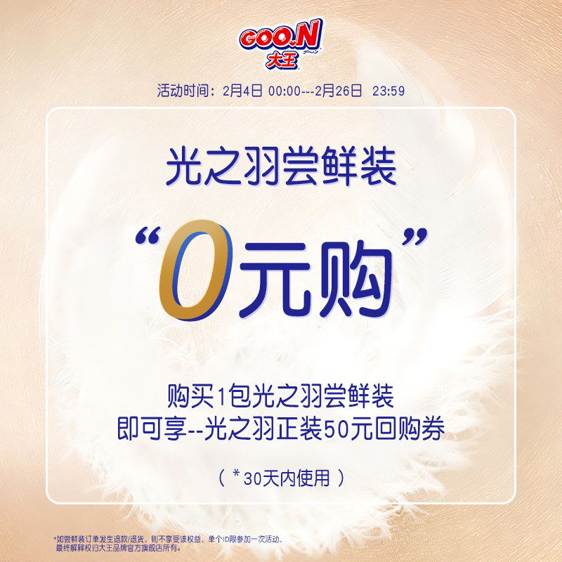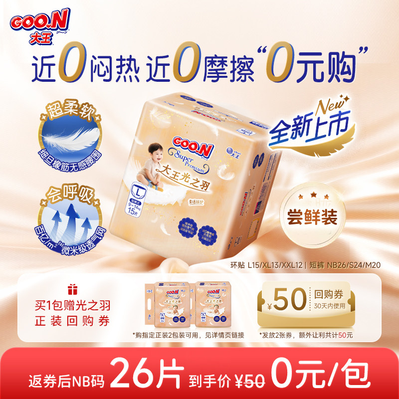 【尝鲜装】大王光之羽纸尿裤拉拉裤NB26新生婴儿柔软尿不湿试用装