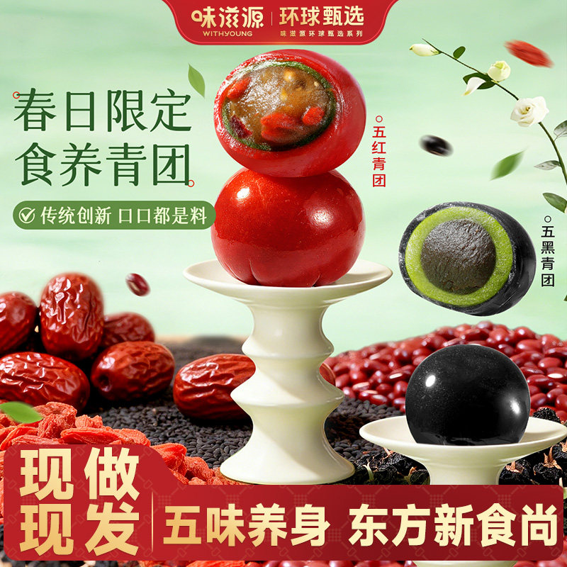 味滋源艾草青团子清明果豆沙蛋黄肉松味麻薯糕点特产小吃糯叽糍粑