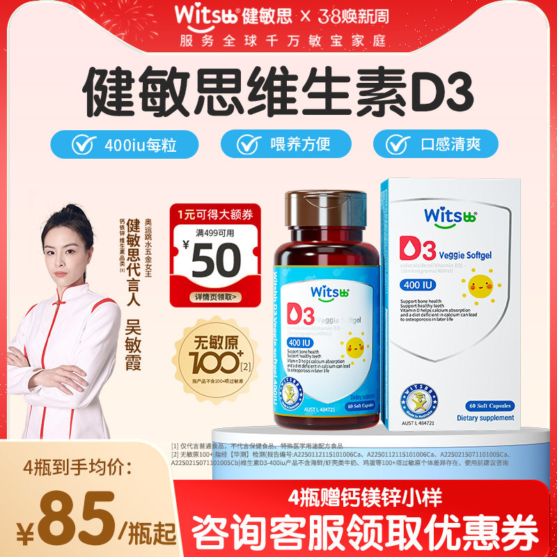 witsbb健敏思婴幼儿维生素d3宝宝儿童专用维D胶囊非滴剂敏宝专研