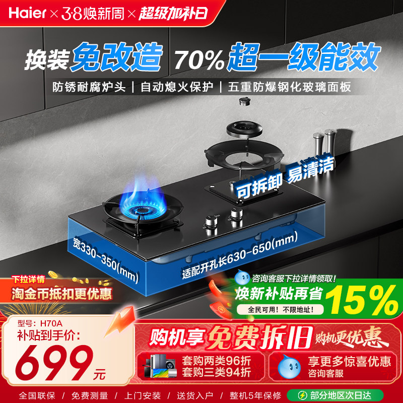 [超省气]海尔厨房家用燃气灶煤气灶台式嵌入双灶台天然气灶具H70A
