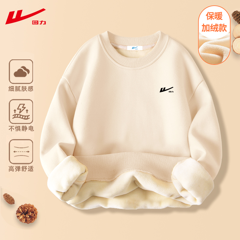 回力女童卫衣2025新款冬装男童加厚上衣儿童冬季内搭小学生打底衫