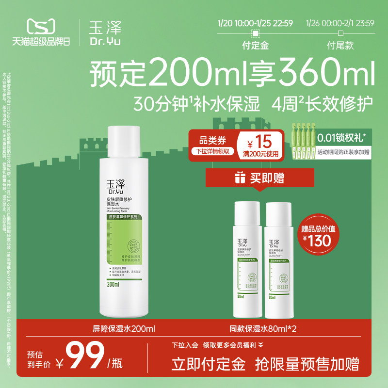 玉泽皮肤屏障修护保湿水干敏肌爽肤水补水温和舒缓泛红刺痛化妆水