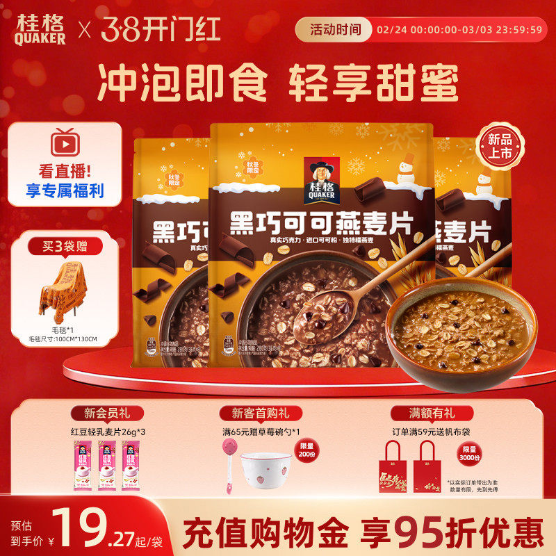 【新品】桂格黑巧可可燕麦片280g速溶冲饮麦片健康营养早餐代餐