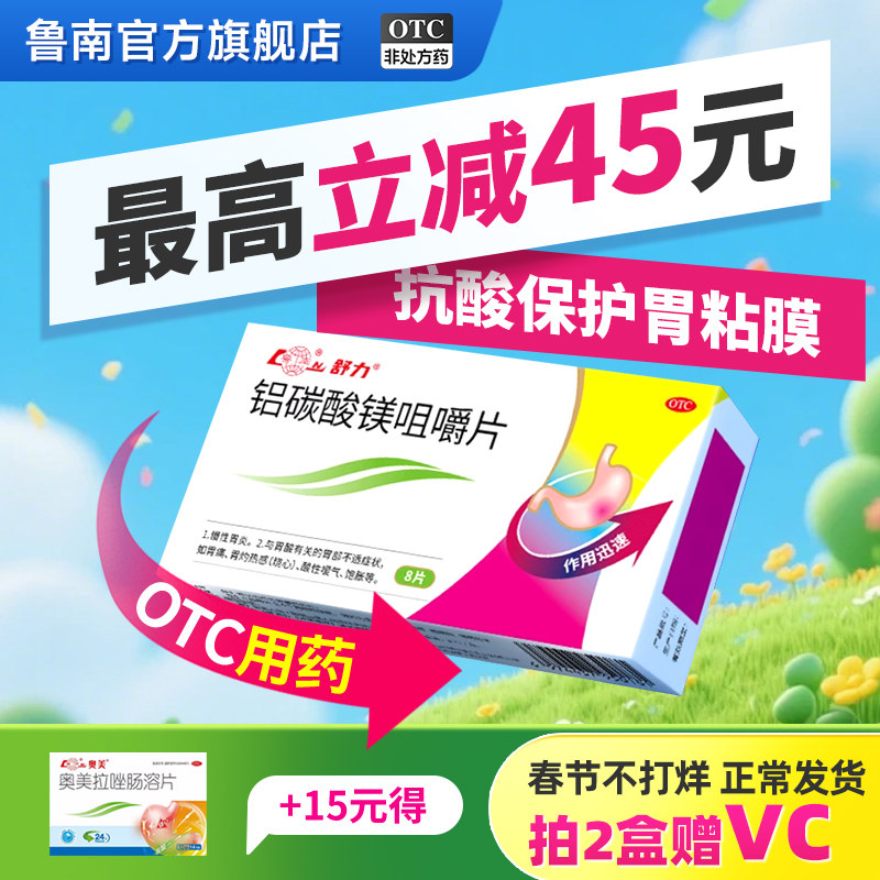 鲁南舒力铝碳酸镁咀嚼片三伏天胃酸痛慢性胃炎反酸烧心消化不良
