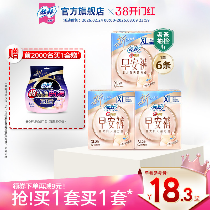 苏菲早安裤魔术贴日用安睡裤防漏超薄无痕官方正品可拆卸日安裤