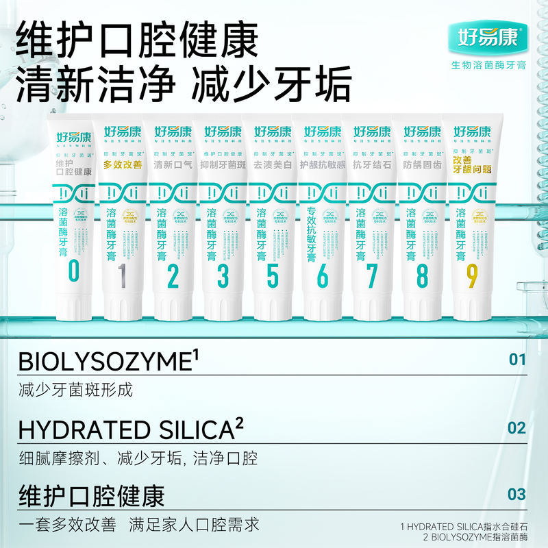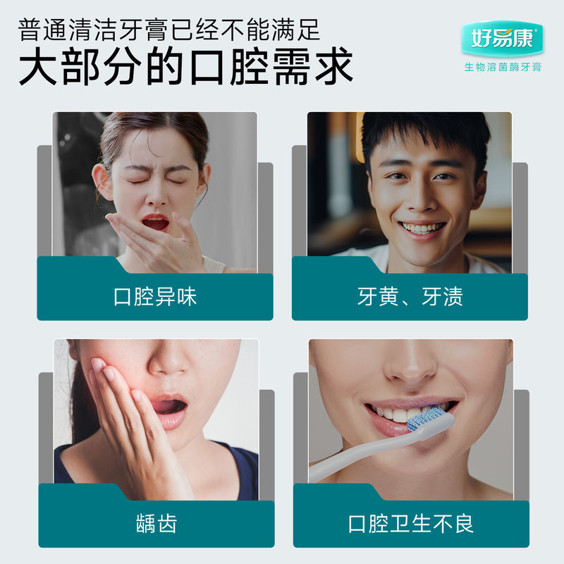 好易康溶菌酶牙膏减轻口腔异味口气清新亮白牙齿减少牙垢家庭装