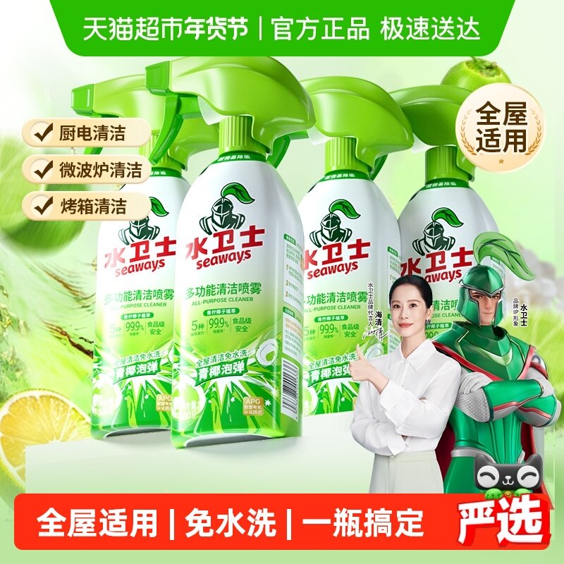 水卫士多功能清洁剂电器冰箱烤箱洗锅底玩具去油污除菌免水洗4瓶