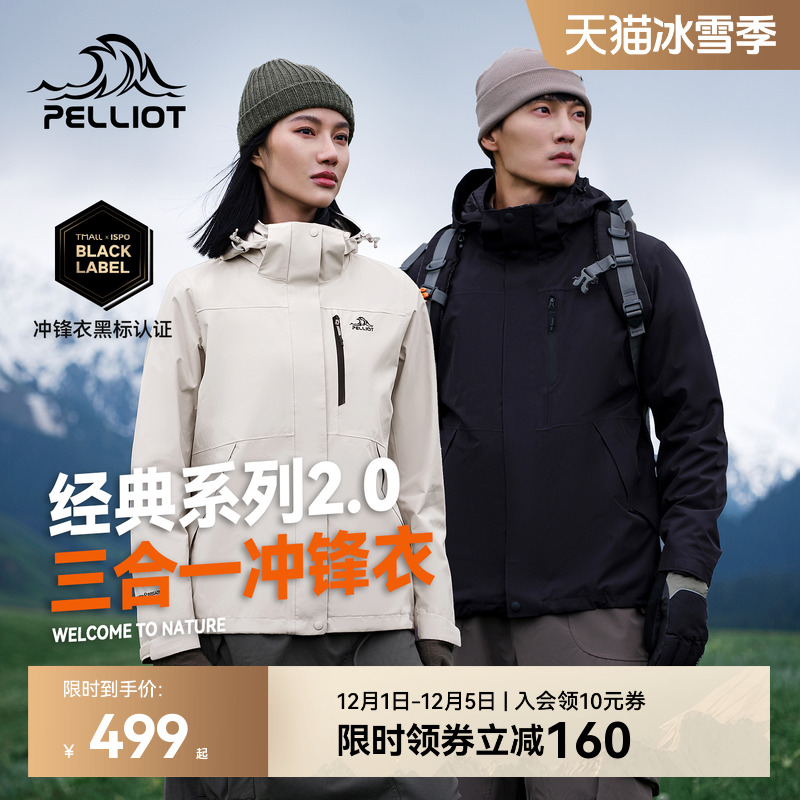 【经典2.0】伯希和户外冲锋衣女三合一鹅绒羽绒服防风防水外套男