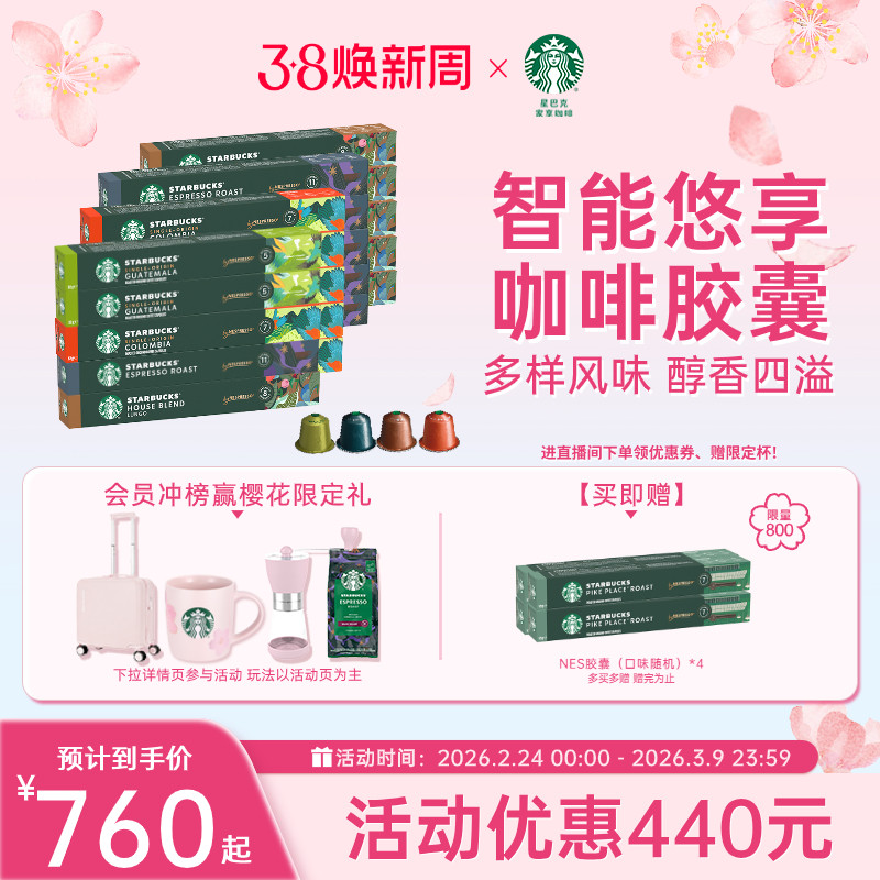 【38焕新周】星巴克胶囊咖啡Nespresso胶囊咖啡200粒浓缩咖啡