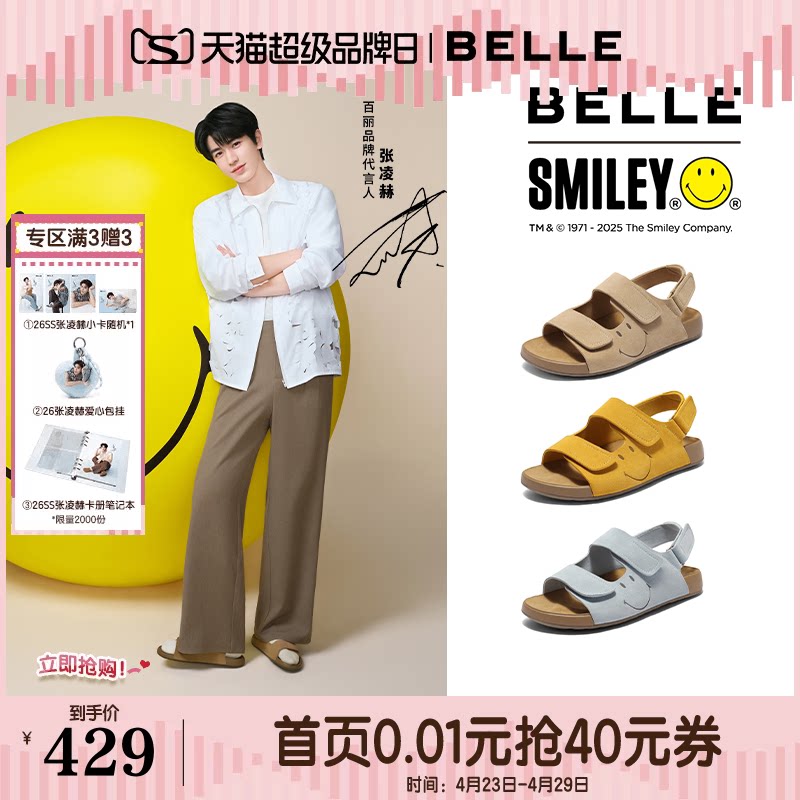 张凌赫同款百丽礼盒SMILEY联名勃肯鞋新款快乐吐司运动凉鞋D7X1预