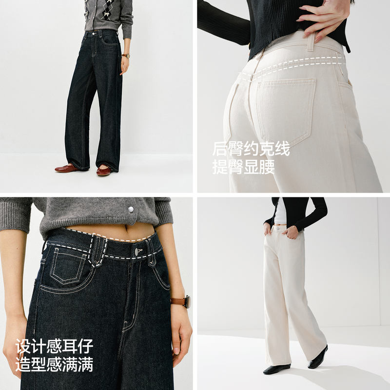 森马牛仔裤直筒裤女莱赛尔阔腿裤26新款春季复古港风松弛拖地长裤