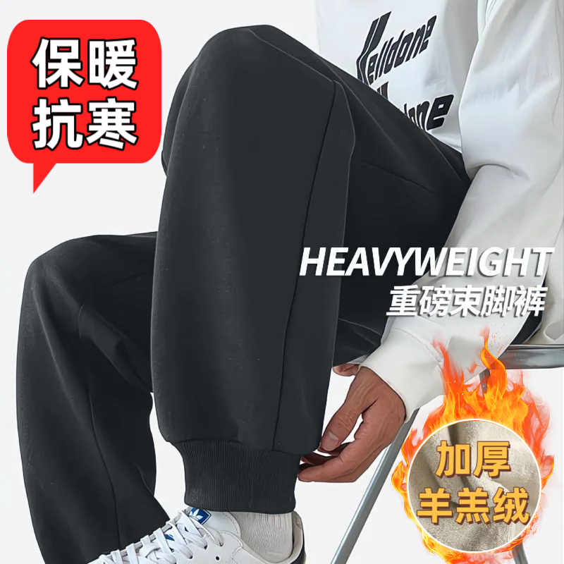 2025羊羔绒保暖裤子男款秋冬新款加绒加厚运动裤百搭休闲束脚卫裤
