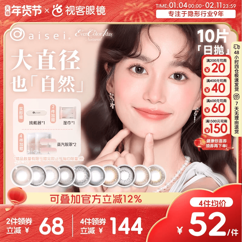 日本aisei爱谢EverColor美瞳日抛10片自然大直径珍珠米白奶油布朗