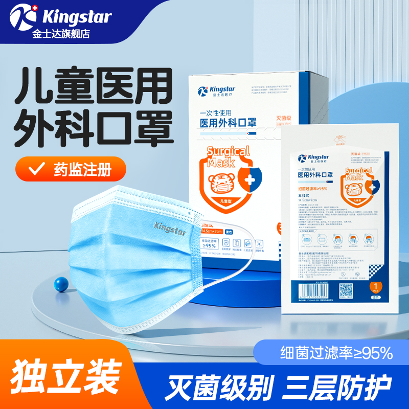 金士达医疗儿童医用外科口罩一次性使用医疗口罩成人灭菌级独立装