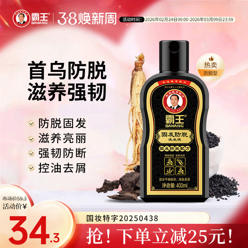霸王何首乌防脱洗发水防断发洗发露人参固色植物蓬松护理洗头膏