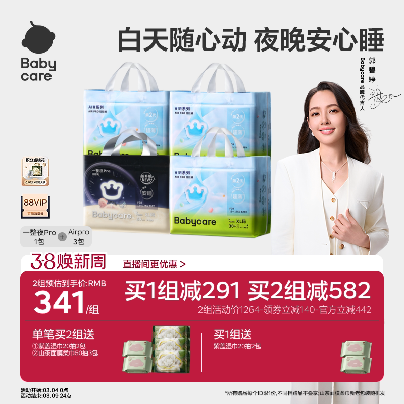 babycare一整夜proairpro纸尿裤拉拉裤超薄日夜用宝宝尿不湿任选