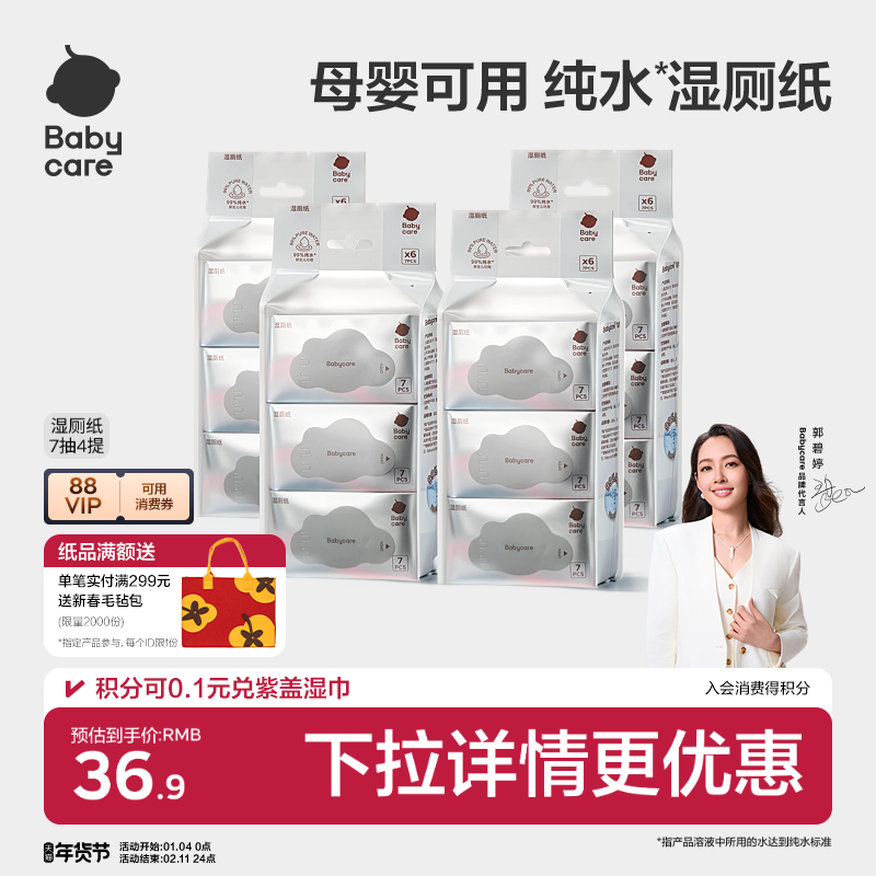 babycare纯水湿厕纸巾便携装小包擦屁股男女士湿厕纸巾官方旗舰店
