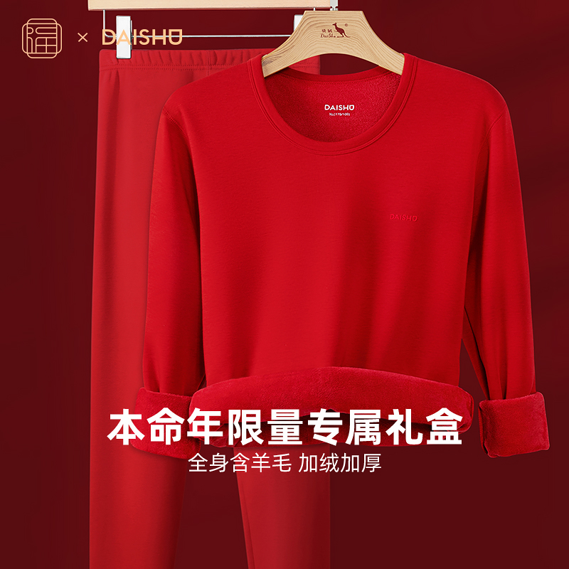 袋鼠保暖内衣加绒加厚男士红色秋衣秋裤套装冬季本命年