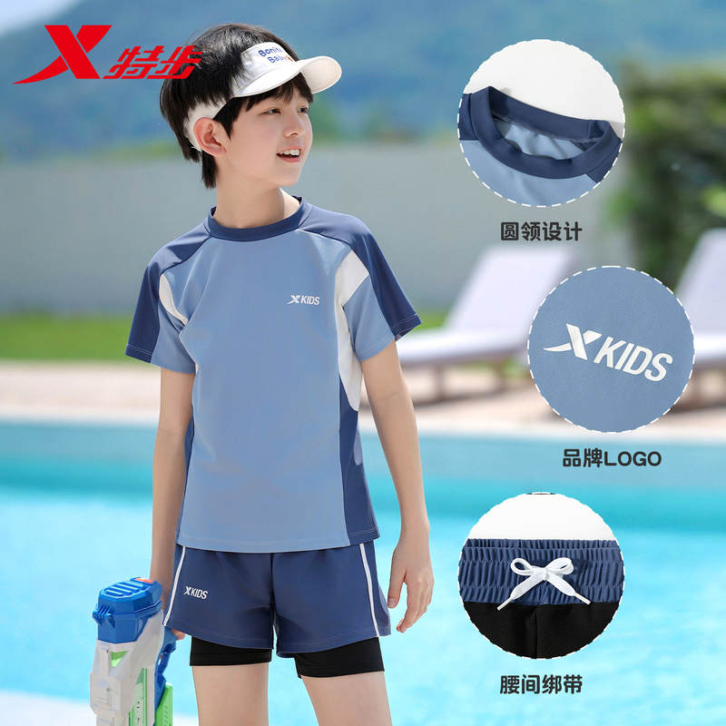 特步儿童泳衣男童分体双层中大童2026新款男孩青少年泳裤泳衣套装