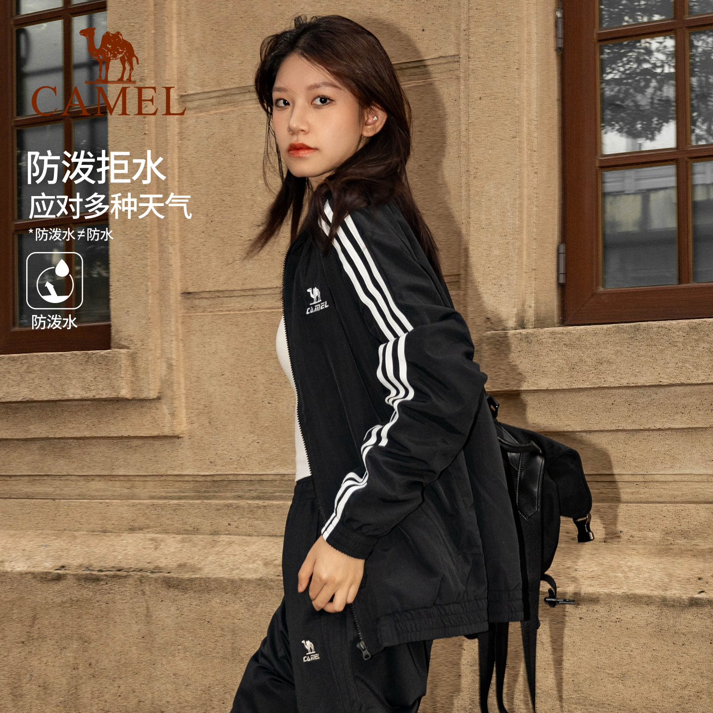 骆驼拒水风衣全地形外套女复古防水防晒薄款户外骑行休闲运动夹克