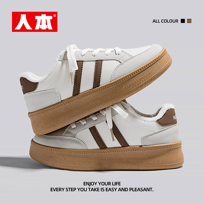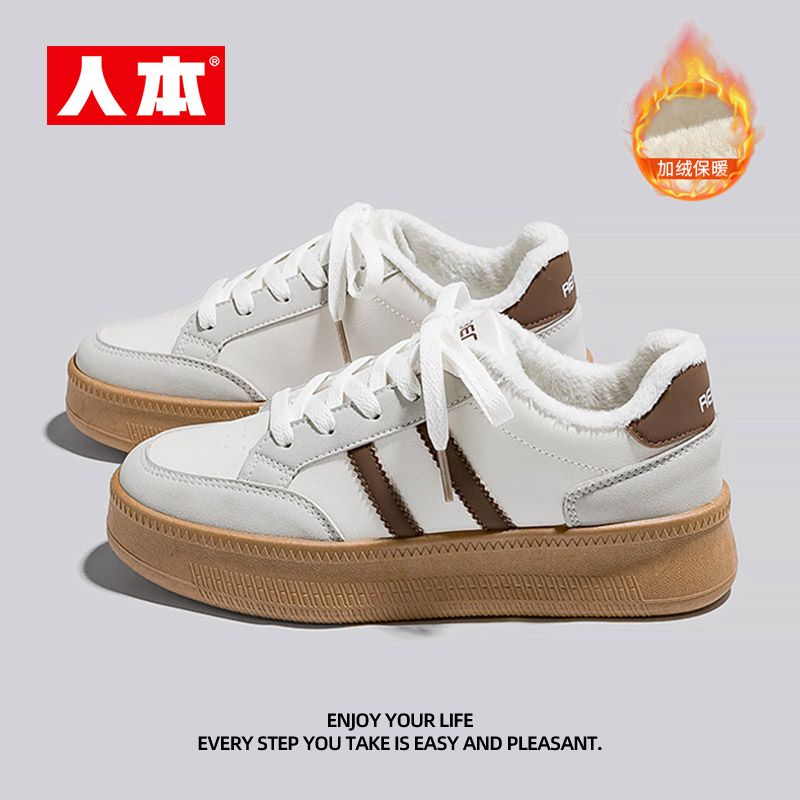 人本德训鞋女2025新款春秋厚底小白鞋女鞋休闲百搭增高舒适板鞋子