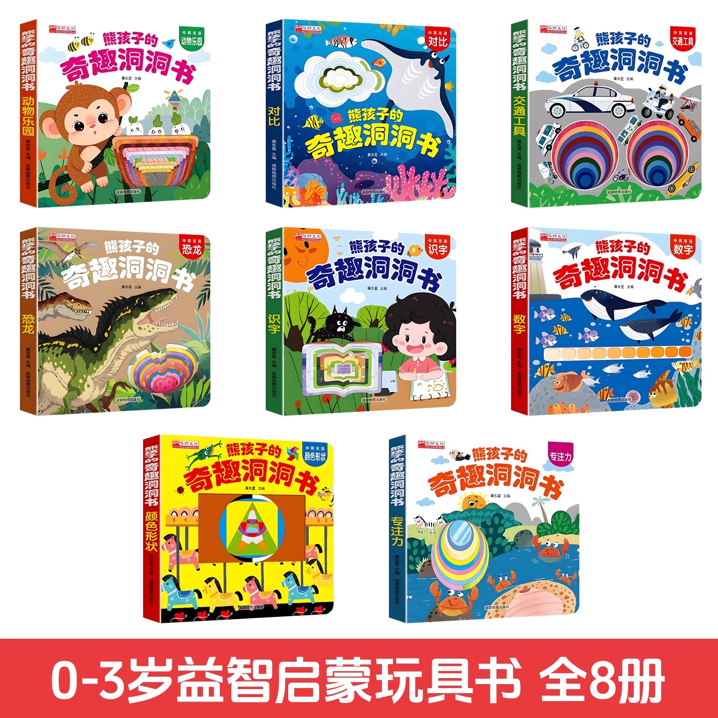 儿童洞洞书婴儿早教撕不烂宝宝绘本故事书幼儿园启蒙认知书交通工具识字益智启蒙玩具书中英双语全8册奇趣洞洞书益智