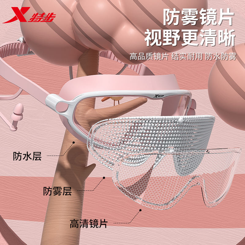 特步儿童泳镜女童高清防水防雾男孩大框游泳镜泳帽套装游泳装备