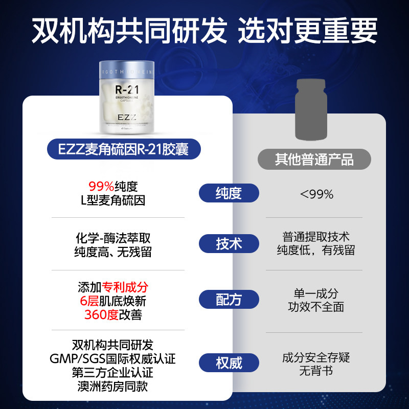 EZZ麦角硫因R-21胶囊99%高纯度L口服美容抗氧精华白