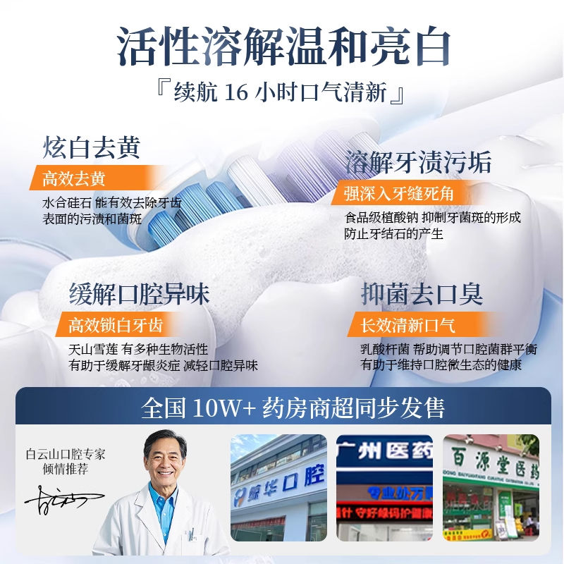 白云山牙膏官方正品雪莲美白修护牙釉质去口臭去烟渍去黄牙膏