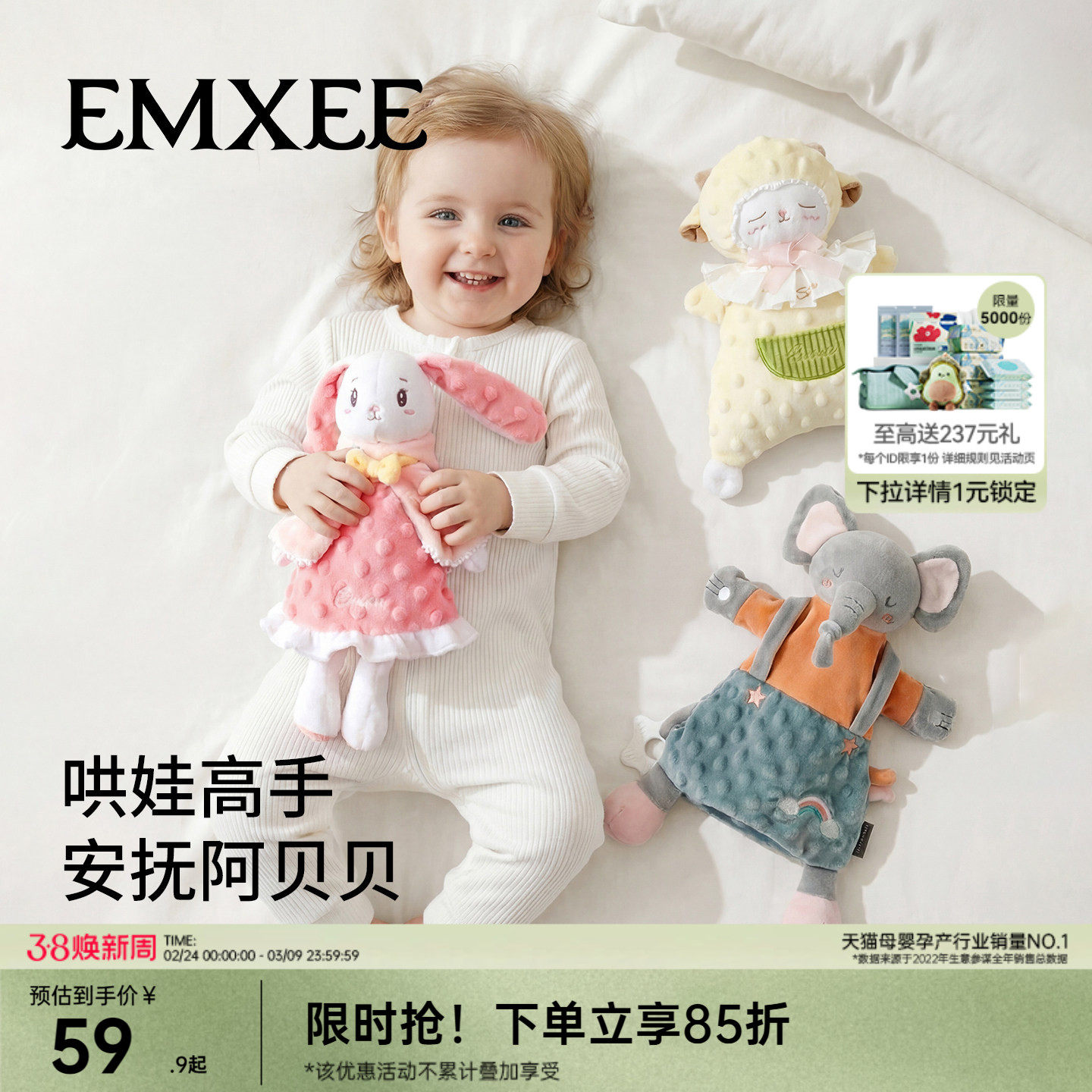 嫚熙安抚玩偶兔子手偶睡觉公仔宝宝毛绒玩具哄睡安抚巾婴儿可入口