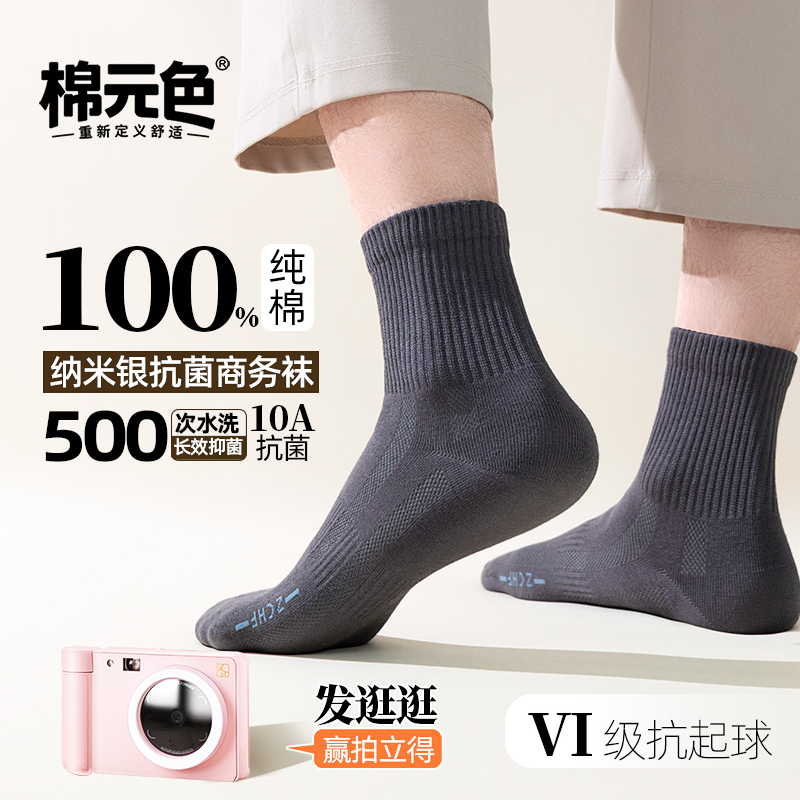 【棉元色】纯棉袜子男10a抗菌防臭袜中筒袜吸汗透气秋冬款运动袜