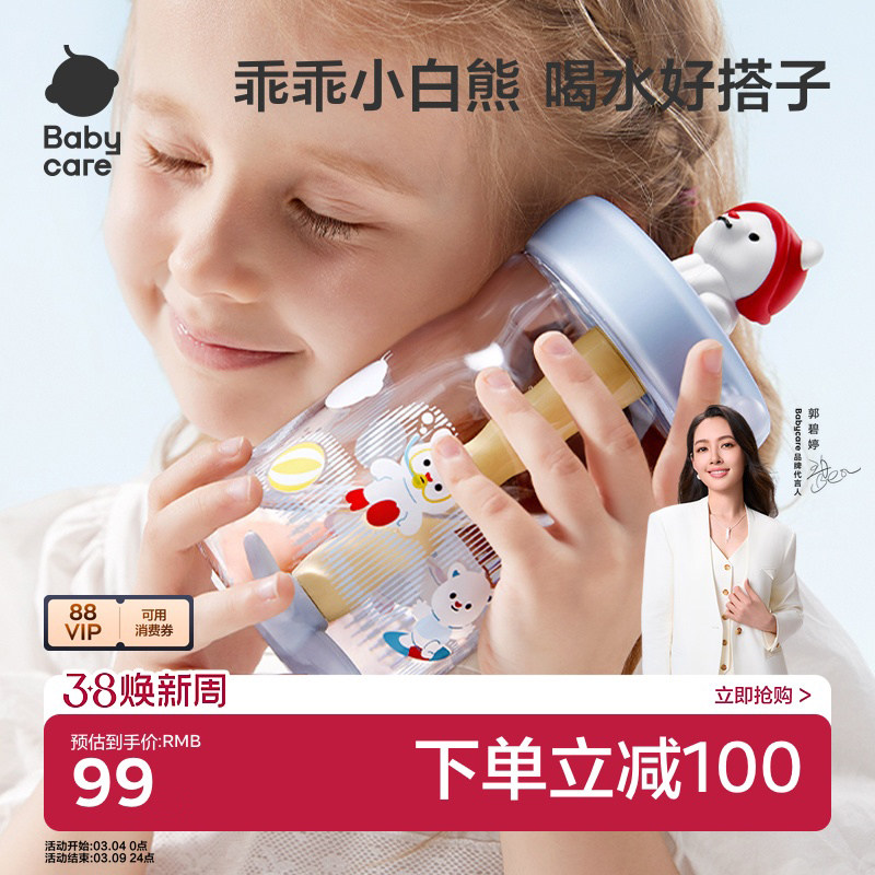 babycare小白熊冷萃儿童水杯男女生幼儿园户外水壶学生夏季喝水