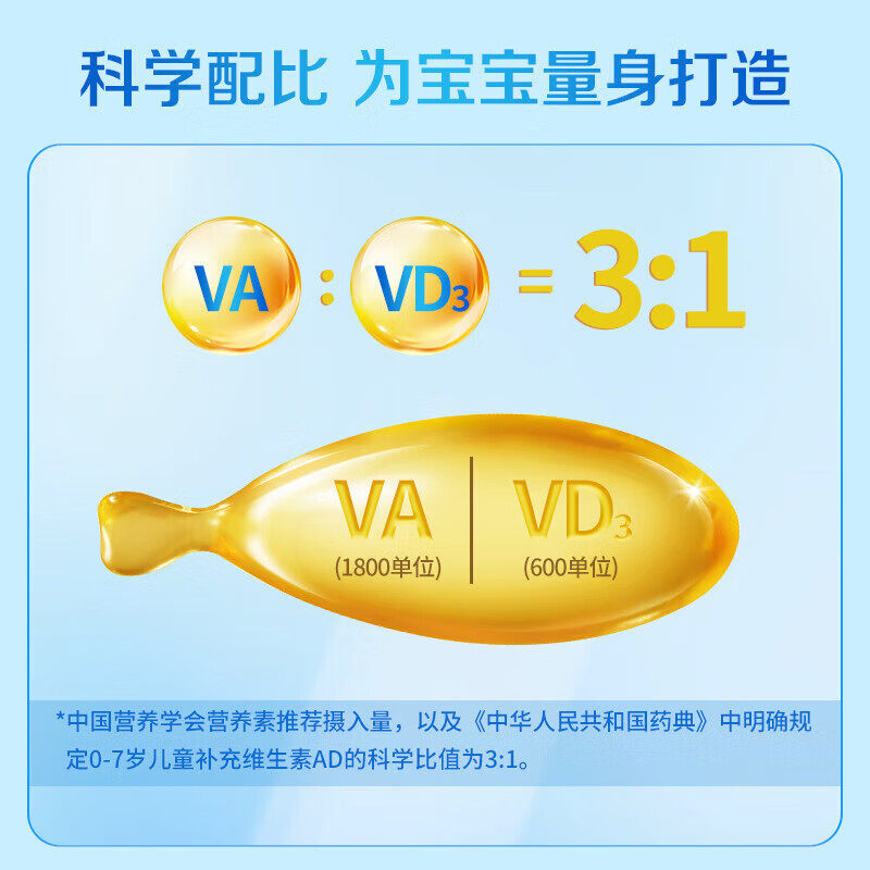 星鲨维生素AD滴剂60粒儿童ad鱼肝油星沙维d孕妇D3婴幼儿宝宝钙