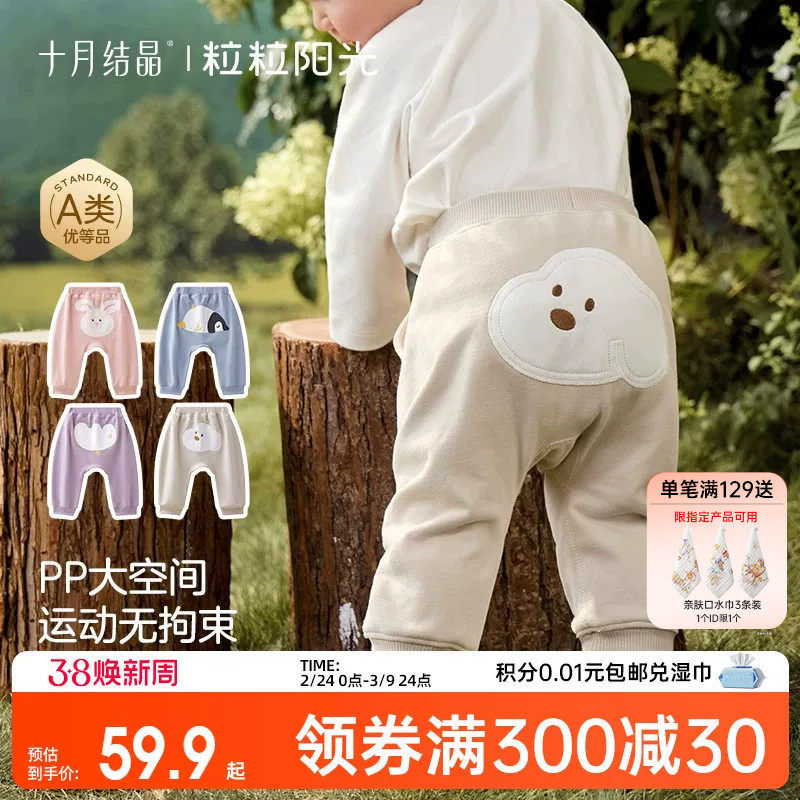 十月结晶粒粒阳光四季婴儿裤子男女宝萌趣屁屁裤亲肤透气防蚊长裤