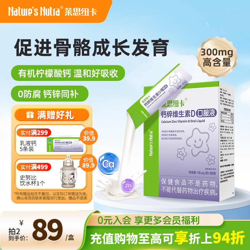 莱思纽卡乳液钙婴儿童锌婴幼儿宝宝液体补钙非专用无海藻镁搭铁片