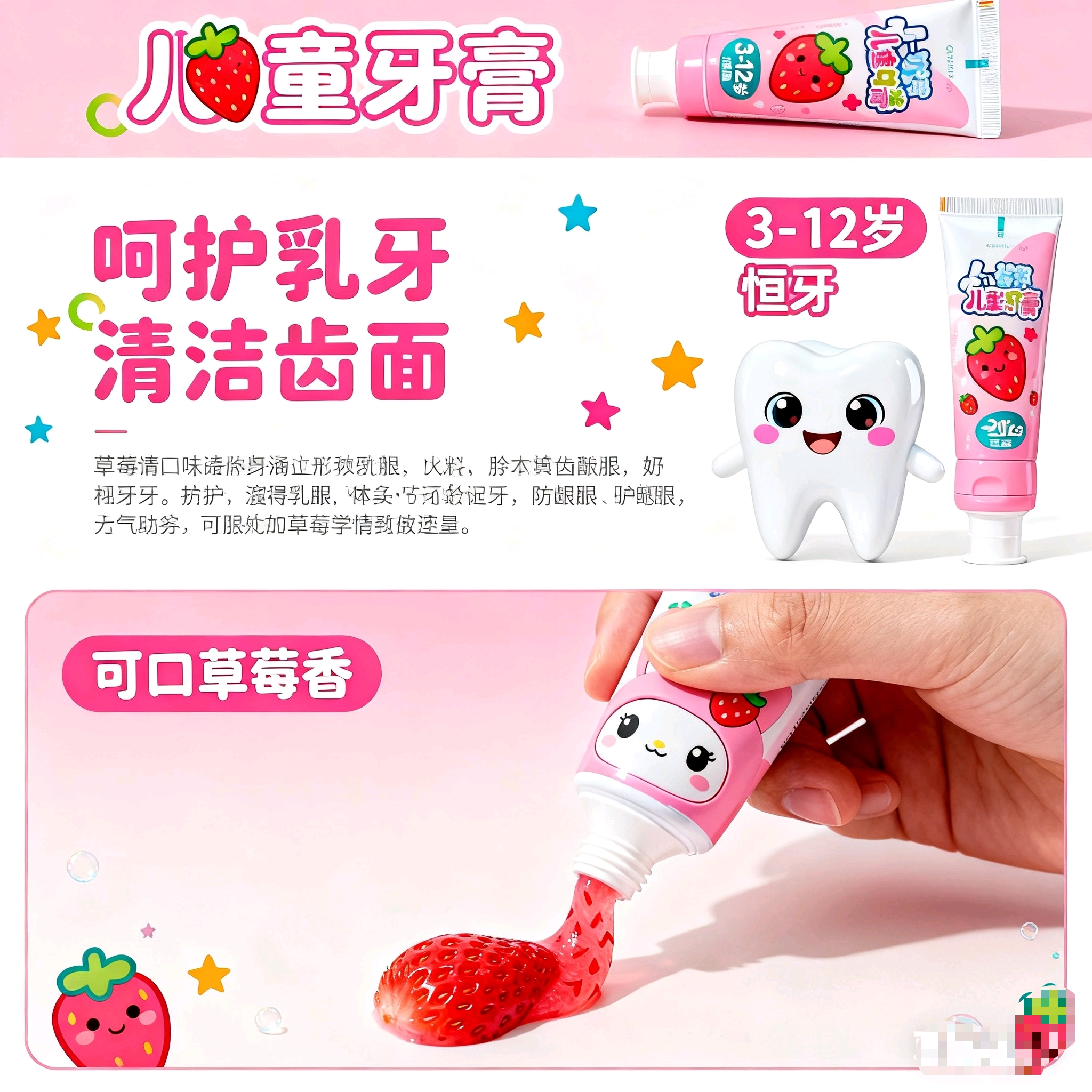 雪多菲铜碳护理儿童防蛀牙膏护齿固齿草莓水果味3-12岁可用