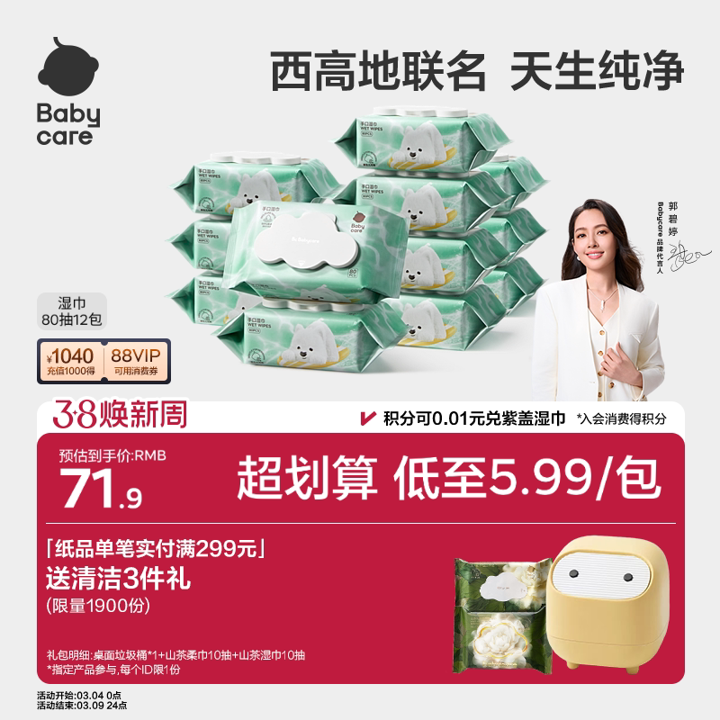 【详情领优惠】babycare纯水湿巾手口专用安全婴儿童宝宝家用大包