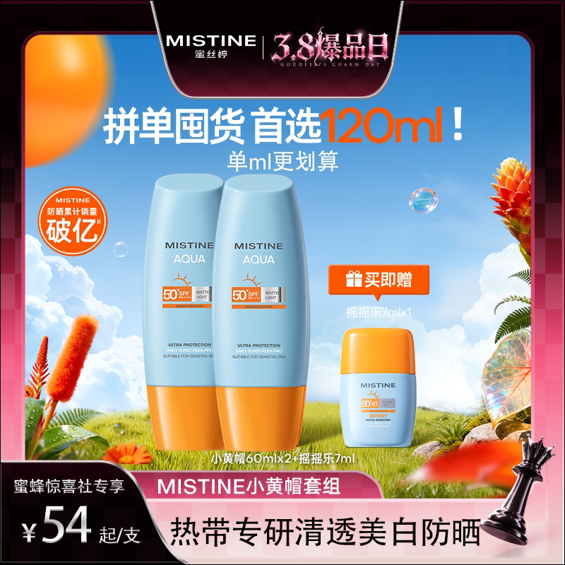 [销量破亿]Mistine蜜丝婷防晒霜小黄帽美白清爽冬女隔离油皮SPF78