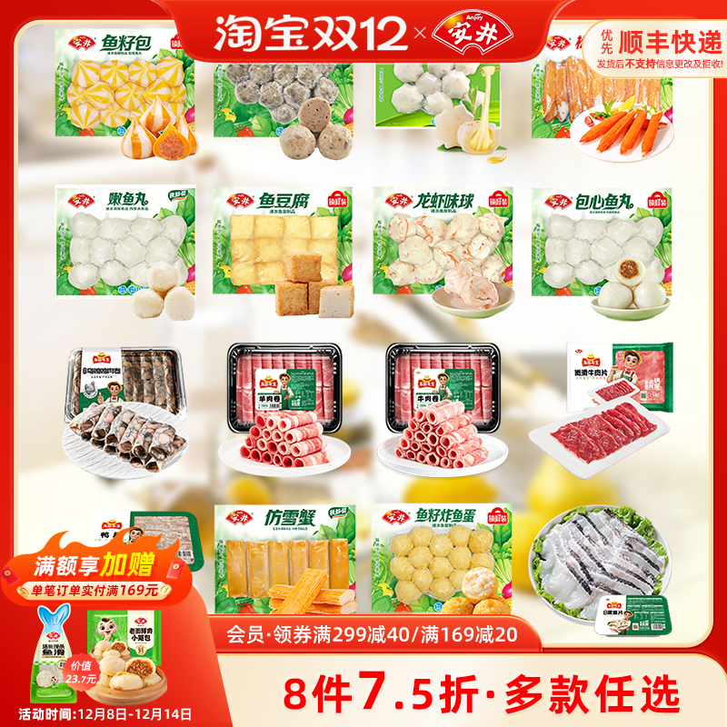 【8件7.5折】安井鱼豆腐鱼籽包虾滑蛋饺包心嫩鱼丸牛羊肉卷火锅丸