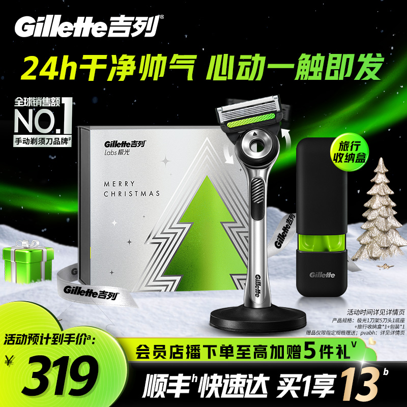 【圣诞礼盒】吉列极光刀手动剃须刀刮胡刀头非吉利送男友剃须礼盒
