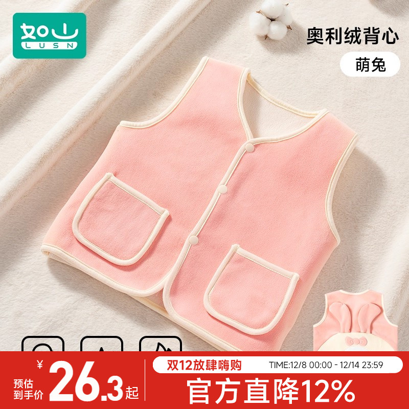 如山奥粒绒儿童马甲2024新款秋冬外出男童女孩宝宝穿坎肩保暖背心