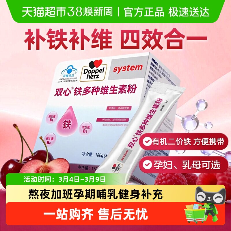 德国双心铁多种维生素粉补铁颗粒女性补铁剂成人维生素B多维