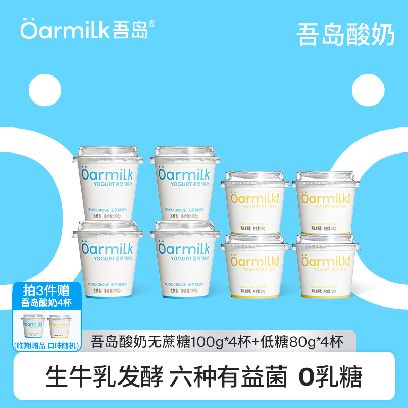 Oarmilk吾岛无蔗糖酸奶8杯迷你装低糖0乳糖酸奶100g+80g