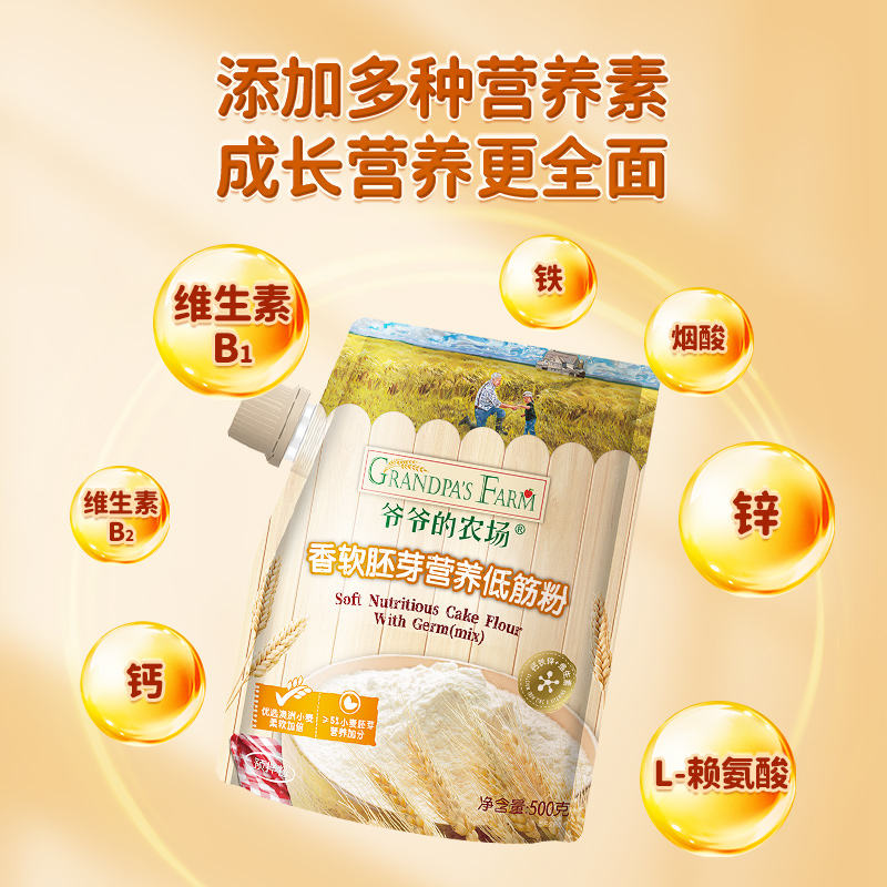 爷爷的农场低筋胚芽面粉蒸馒头家用烘焙蛋糕粉松饼送婴幼儿辅食谱