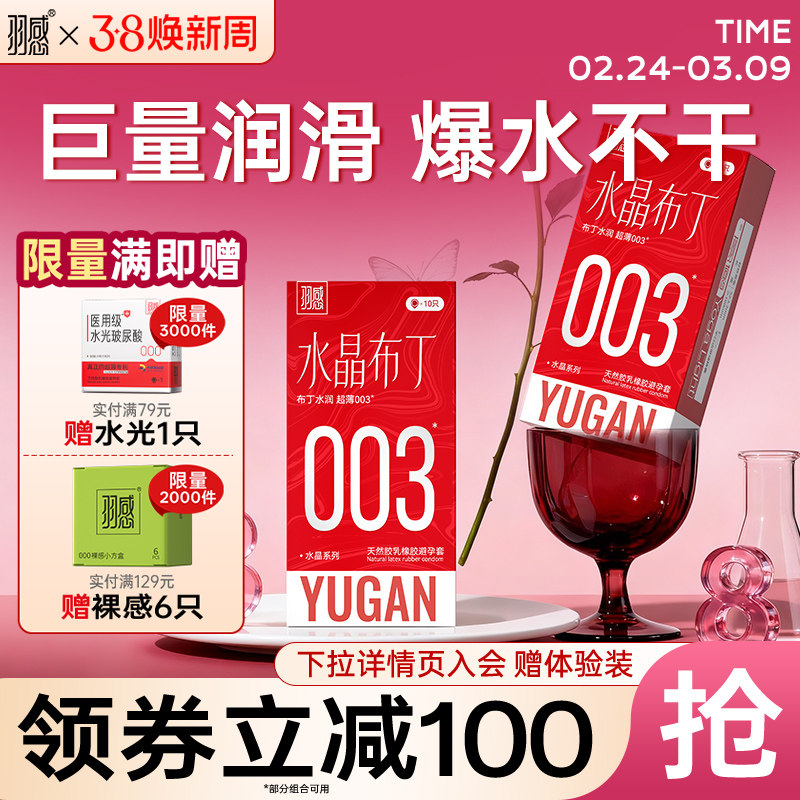 【羽感水晶布丁】超薄玻尿酸避孕套官方旗舰店水润安全套女性套套