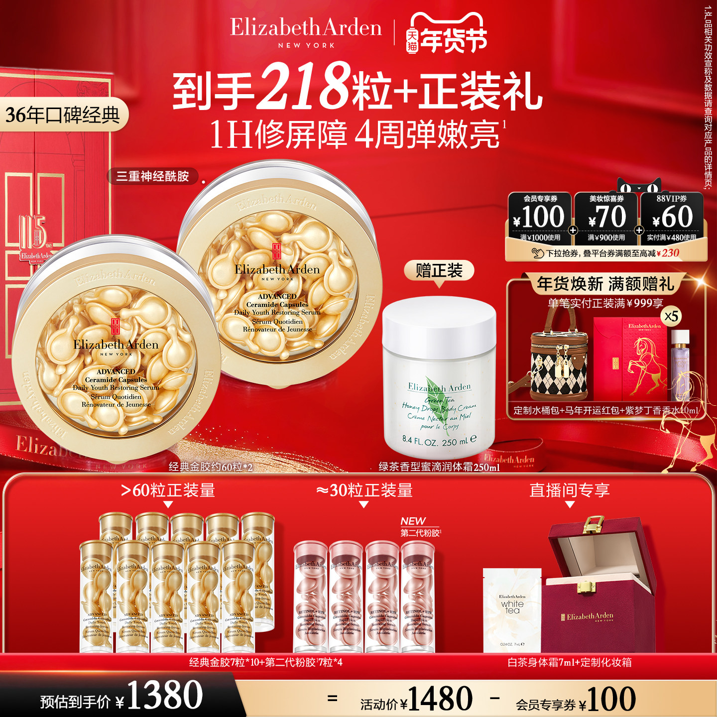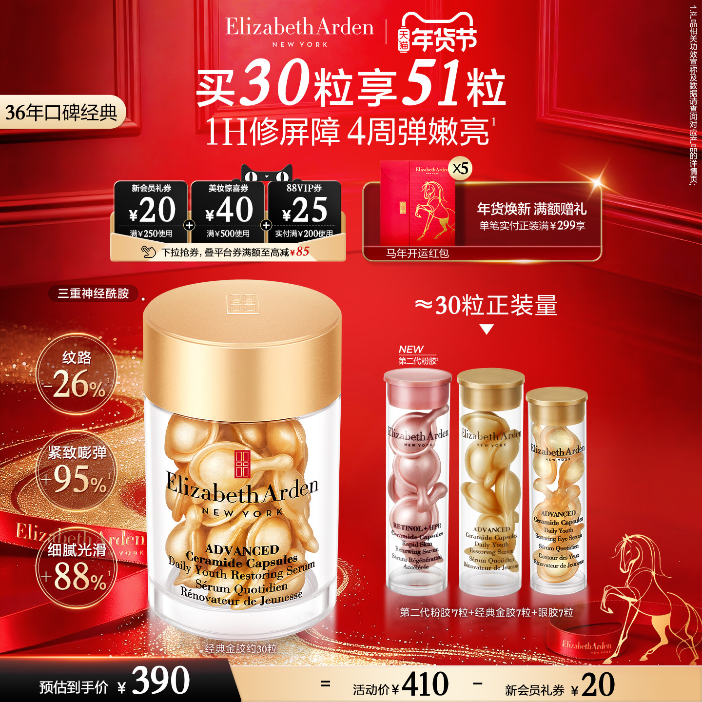 【年货节】雅顿经典金胶精华 修护屏障 神经酰胺保湿抗皱胶囊