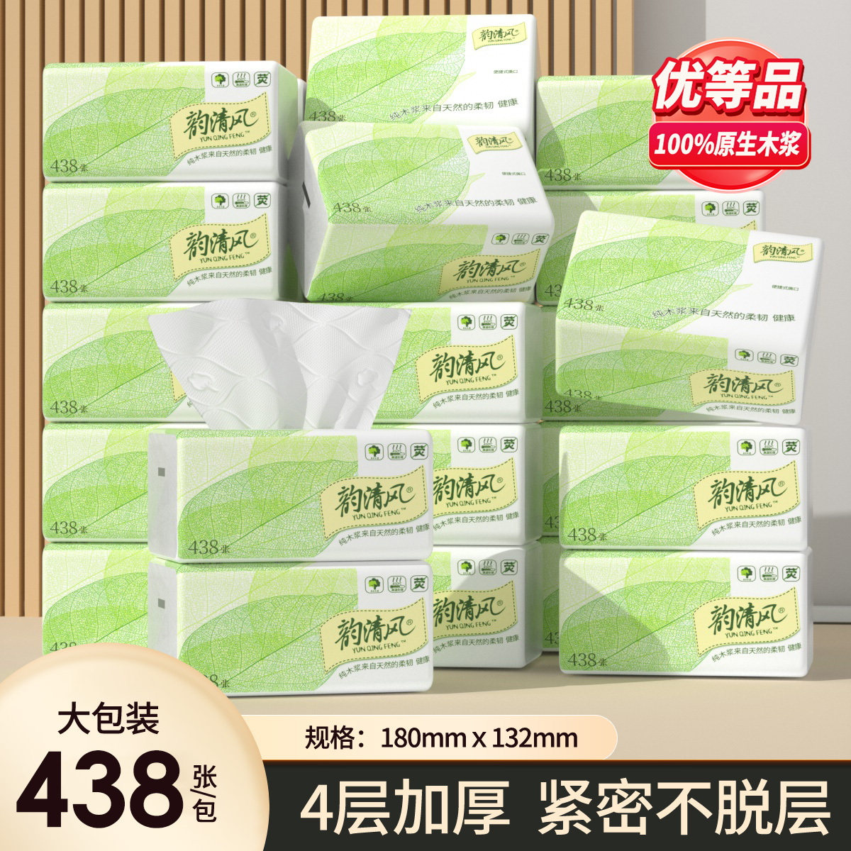【优等品】100%原生木浆纸巾438张4层加厚抽纸109抽 尺寸180*132